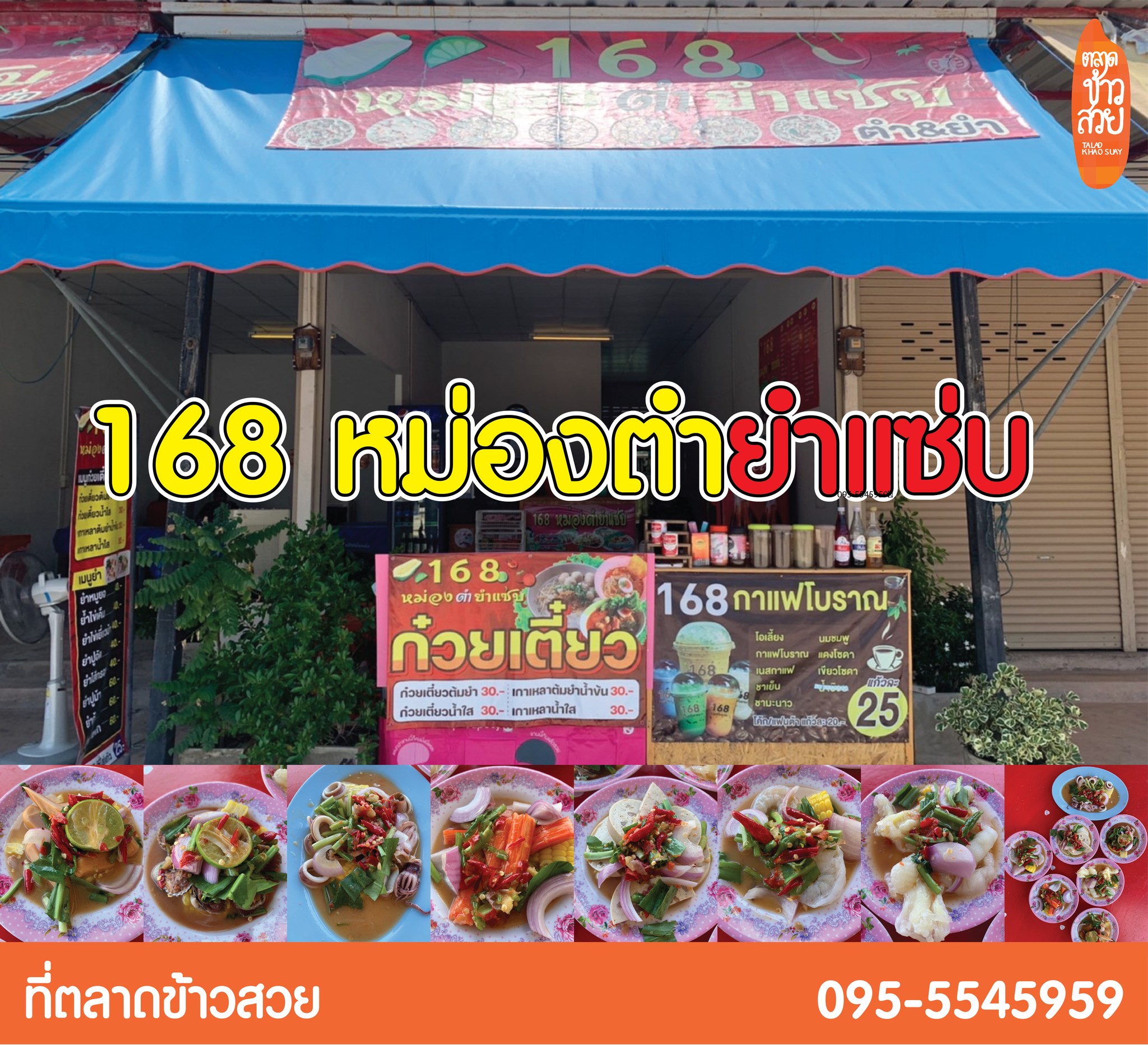 168 หม่องตำยำแซ่บ ร้านเปิดปกตินะครับที่ร้านมีเมนูก๋วยเตี๋ยวหมูต้มยำน้ำข้น ราคา 30.-เมนูยำ 20-60 บาทและเมนูยำ&ส้มตำมากมายให้ลูกค้าได้เลือกสรรค์